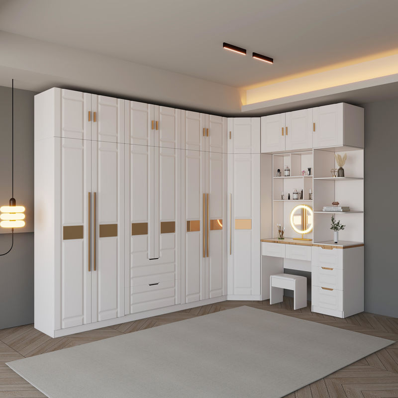 Główna konstrukcja: Główna konstrukcja szafy lub szafy składa się zwykle z wysokiej jakości płyt, takich jak sklejka, płyta MDF lub lite drewno.Płyty te charakteryzują się doskonałą stabilnością i trwałością, zapewniając wieloletnie użytkowanie szaf i garderób.