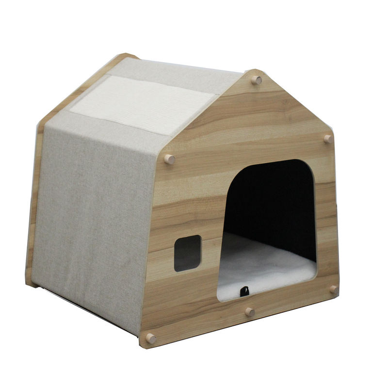 Przestrzeń wewnętrzna: Składane domki dla kotów z drewna dla zwierząt domowych nadają się do wnętrz domowych i zapewniają bezpieczne i prywatne miejsce do odpoczynku dla kotów domowych.Koty mogą odpoczywać, uciekać i relaksować się w domu, ciesząc się ciepłą, rodzinną atmosferą.