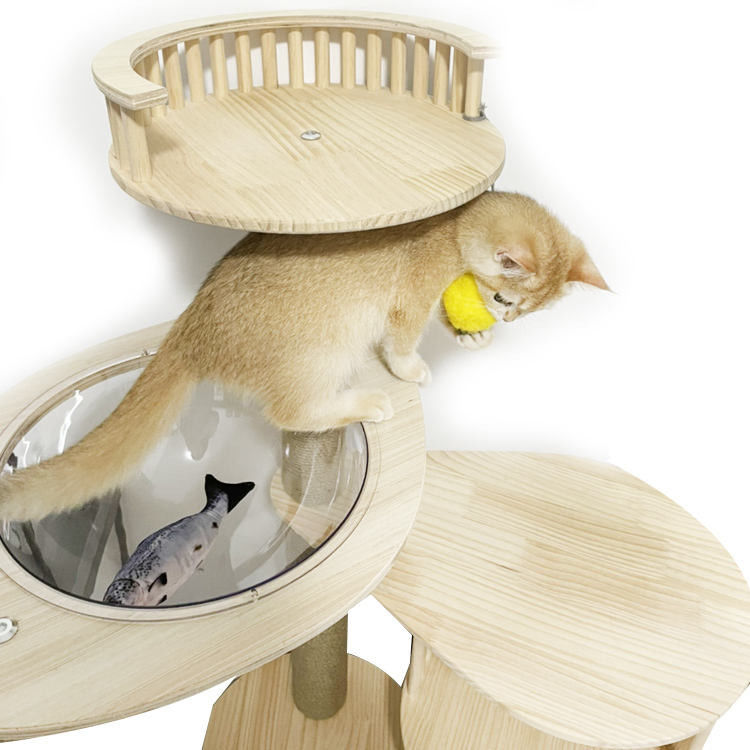 Fabryka Luksusowe duże jasnożółte nowoczesne drewniane meble dla zwierząt Wieża dla kotów Dom Scratcher Tree