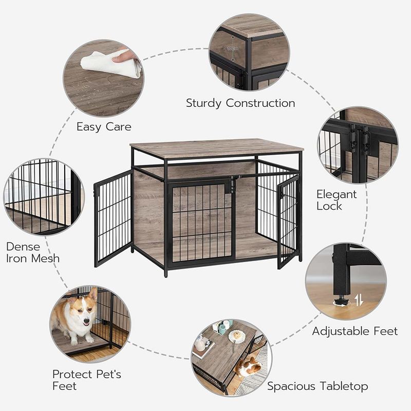 Meble do klatek dla psów, drewniany stolik dla psów, budy dla psów z 3 drzwiami do wnętrz, styl dekoracyjny siatkowa klatka dla zwierząt dla dużych