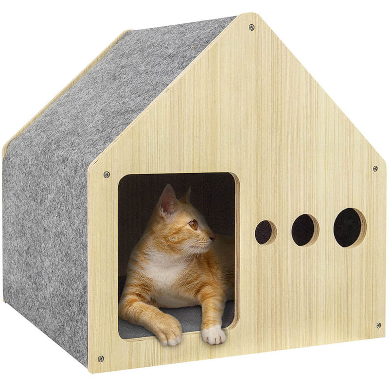 Przestrzeń wewnętrzna: drewniane łóżko namiotowe dla kota nadaje się do pomieszczeń w domu i zapewnia wygodne miejsce do odpoczynku dla kota.Umieszczone w salonie, sypialni lub na balkonie łóżko namiotowe można zintegrować z otoczeniem domowym, tworząc prywatny i ciepły kącik do odpoczynku dla kota.