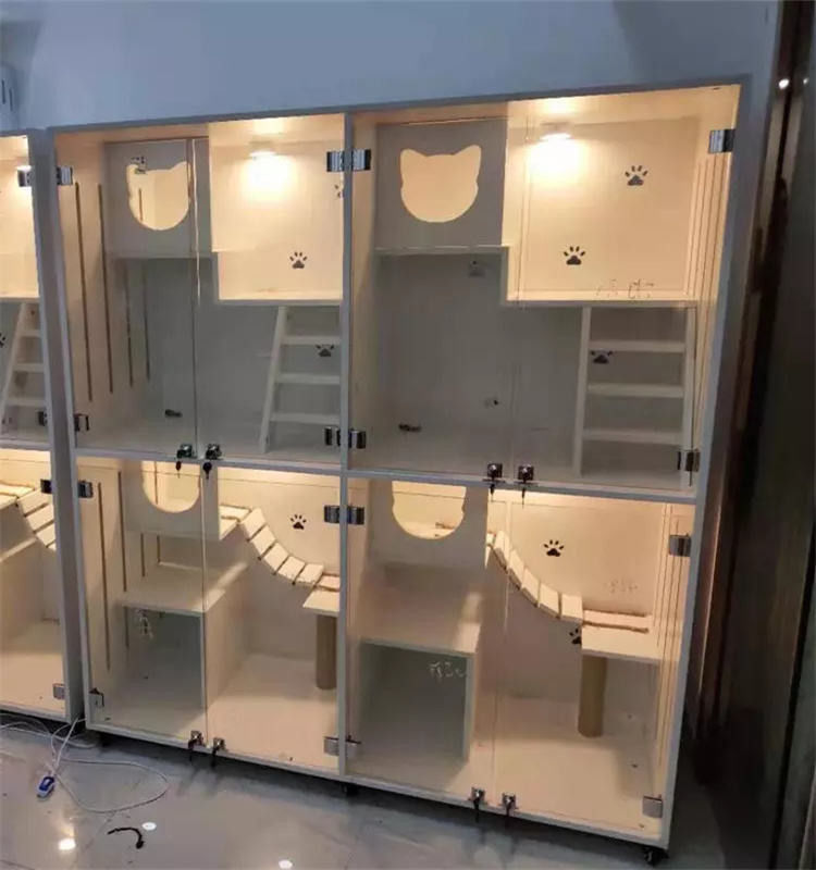Hodowla lub hotel dla zwierząt: W hodowli lub hotelu dla zwierząt wielopiętrowa willa dla kotów jest również jednym z popularnych mebli dla zwierząt.Zapewnia luksusową przestrzeń życiową, w której koty czują się rozpieszczane i otoczone opieką.