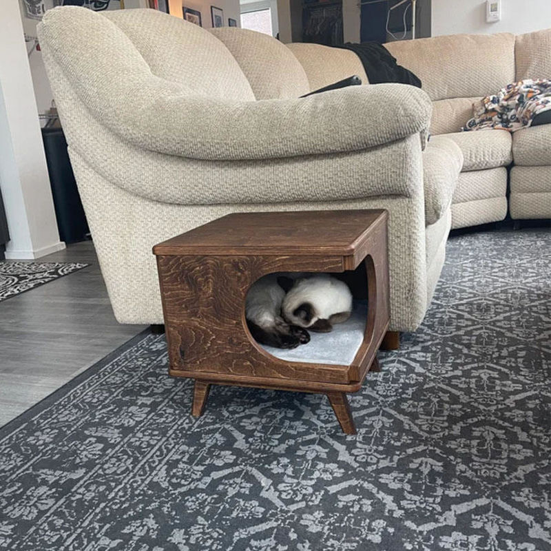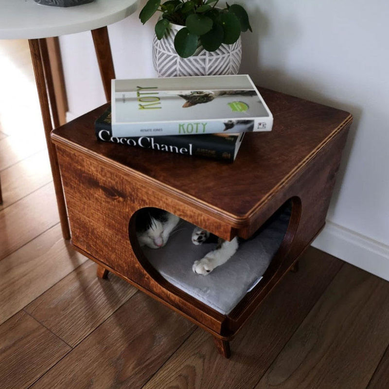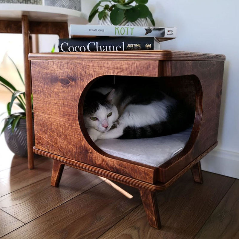 Meble dla zwierząt Stolik drewniany Domek dla kota Przytulne drewniane łóżko dla kota Dom Rustykalne pudełko