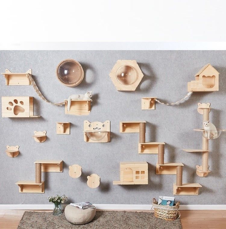 Produkty Drewniane meble dla zwierząt Zestaw do wspinaczki dla kotów do montażu na ścianie to innowacyjny, zajmujący mało miejsca i zabawny mebel zaprojektowany specjalnie dla kotów, aby zapewnić wszechstronną i zabawną przestrzeń życiową dla Twojego kota.Przyjrzyjmy się teraz różnym komponentom produktu i różnym scenariuszom zastosowań: