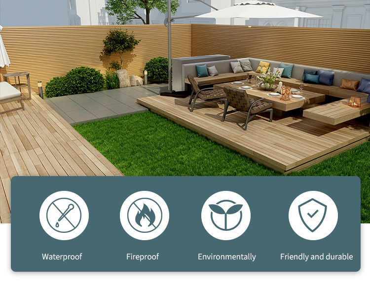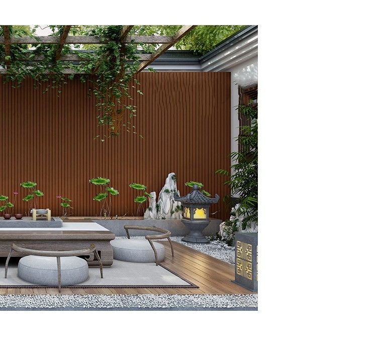 Strefa rekreacji na świeżym powietrzu: Okładzina zewnętrzna z grilla WPC może służyć do tworzenia terenów rekreacyjnych na świeżym powietrzu, takich jak dziedzińce, tarasy, ogrody itp. Drewniana okładzina wnosi naturę i ciepło do strefy rekreacji na świeżym powietrzu, pozwalając cieszyć się wolnym czasem na świeżym powietrzu.