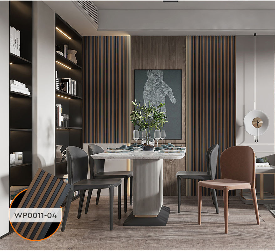 Materiały WPC: Kratki WPC są przyjazną dla środowiska i łatwą w montażu dekoracją wnętrz Panele ścienne PS WPC 3D wykonane są z kompozytu drewniano-plastikowego (WPC), będącego mieszanką włókna drzewnego i wysokiej jakości żywicy polietylenowej lub polipropylenowej.Materiały WPC odziedziczyły teksturę drewna i wodoodporność plastiku, zapewniając doskonałą wydajność i niezawodną trwałość płyt ściennych.