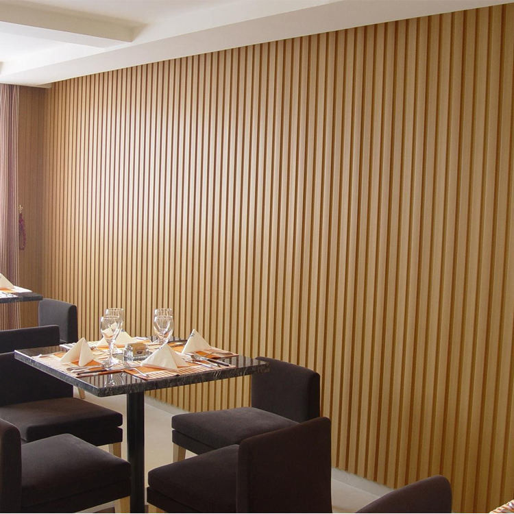 Okładziny ścian wewnętrznych: kratka WPC drewno-plastikowa okładzina ścienna z rowkiem nadaje się do dekoracji ścian wewnętrznych.Dzięki połączeniu drewniano-plastikowej kratki i ryflowanej płyty ściana ma bardziej warstwowy i trójwymiarowy charakter, dodając wyjątkowego piękna wnętrzu.