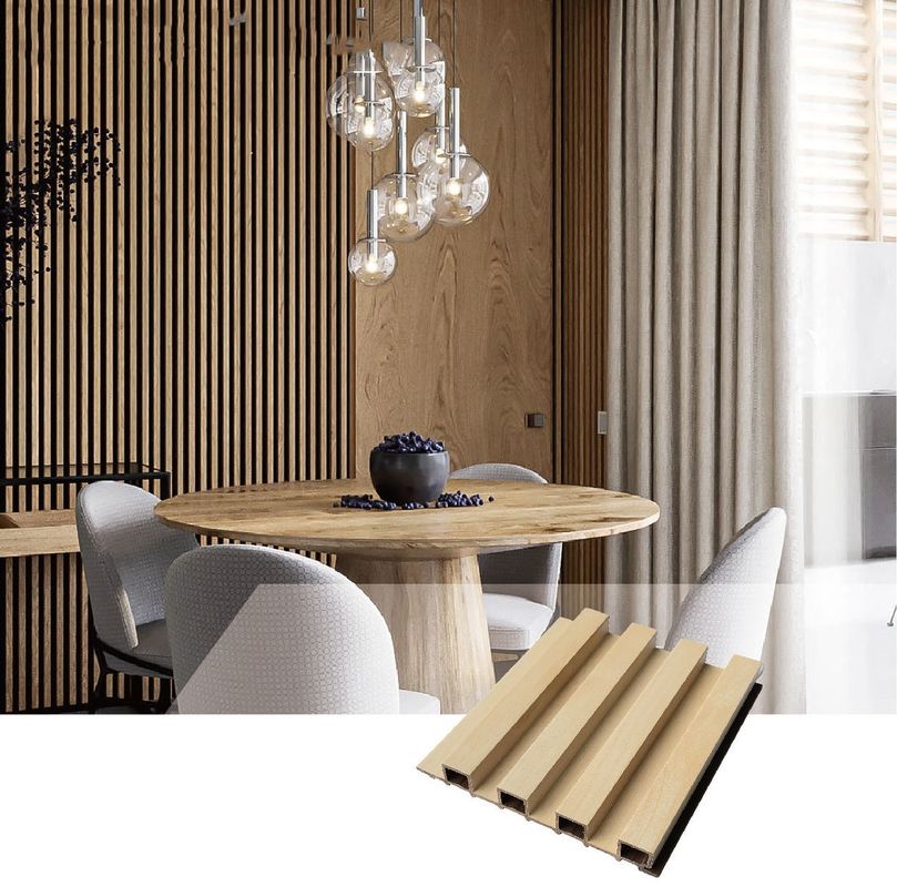 Dekoracja domu: panele ścienne mogą być używane do dekoracji wnętrz, takich jak salon, sypialnia, jadalnia itp. Dzięki połączeniu kratki WPC, konstrukcji odpornej na pęknięcia i rowków z drewna, dodaje natury i piękna ścianie domu, jednocześnie są trwałe i przyjazne dla środowiska dla zachowania długotrwałego efektu estetycznego.