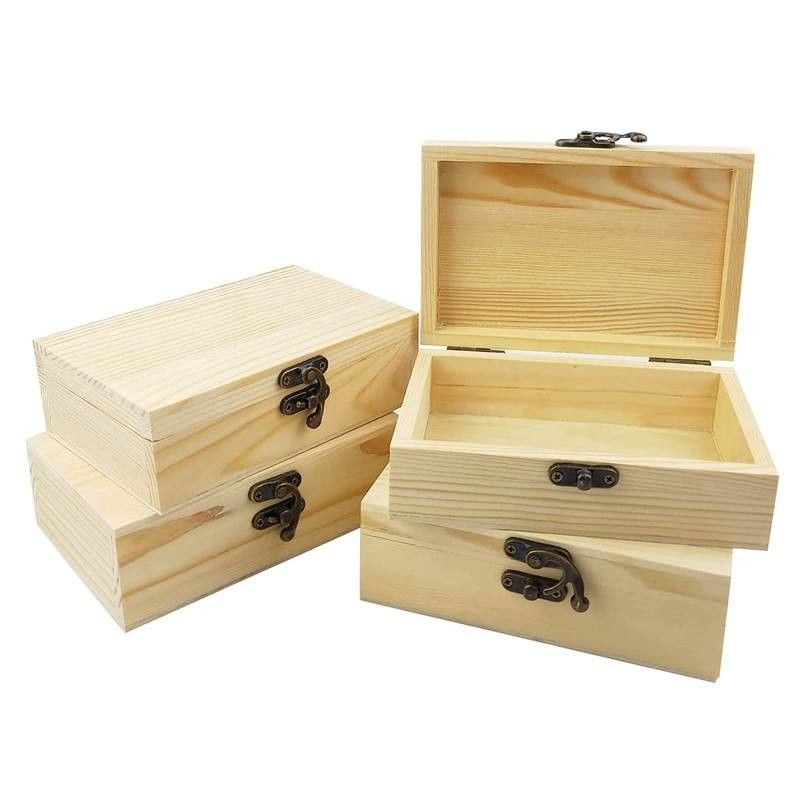 FSC Niedokończone drewniane pudełko z pokrywką z zawiasem Pudełko z drewna sosnowego na rękodzieło