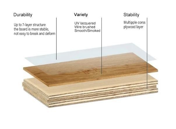 Podłoga inżynierska z orzecha włoskiego nadaje się do różnych wnętrz, zapewniając elegancką i luksusową dekorację podłóg w luksusowych domach, ekskluzywnych sklepach i luksusowych hotelach.